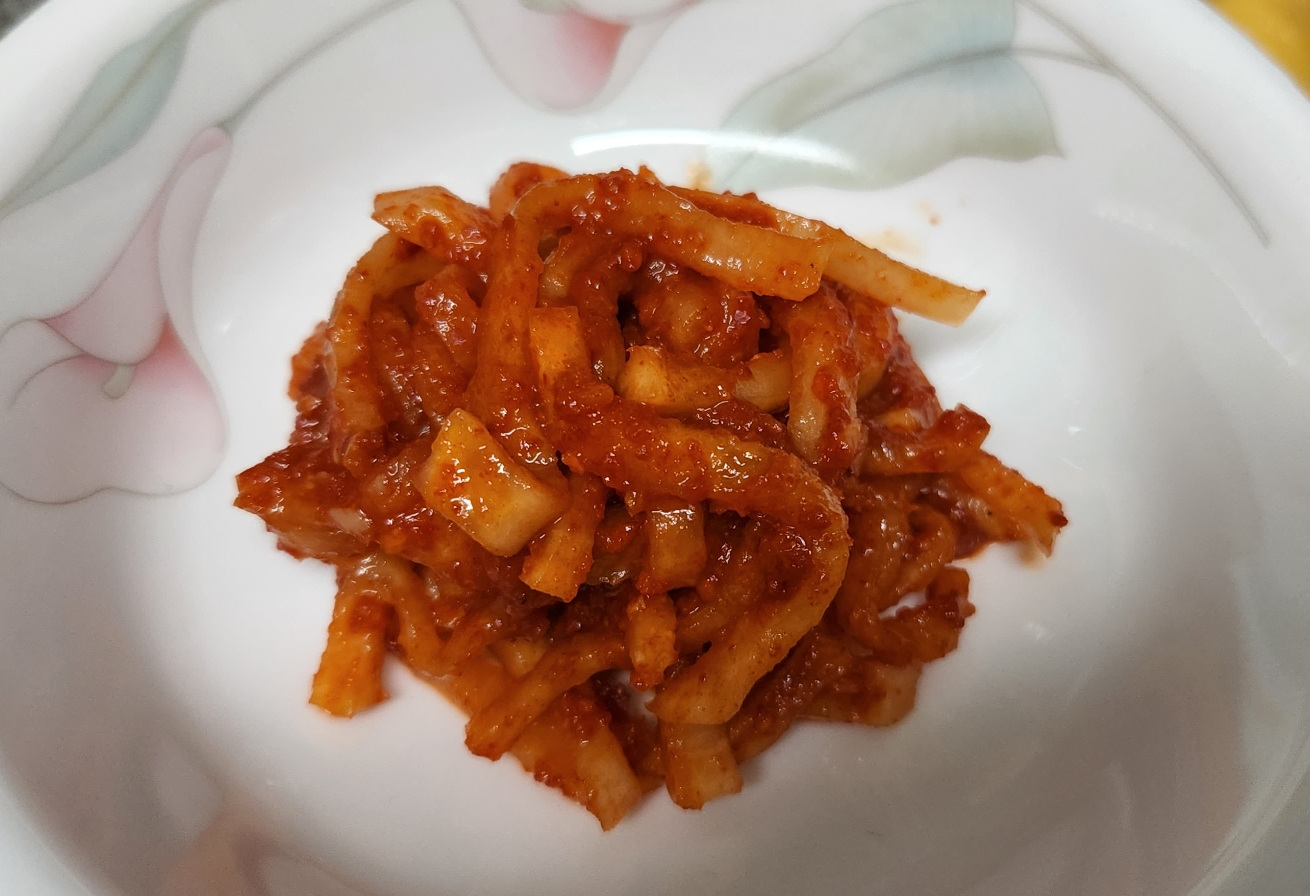 5. 물기를 제거한 무와 양념을 잘 섞어주면 된다.